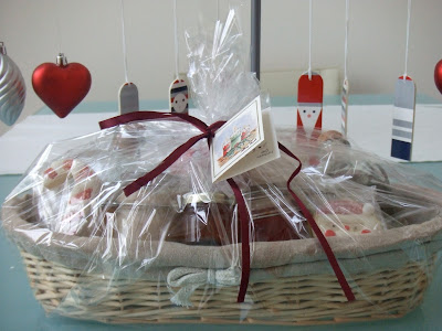 Yo hice dos versiones, una con líquidos y otra sin (añadiendo productos típicos de Mallorca). Lo de salir de la isla en avión, a veces, puede resultar un engorro y no se pueden llevar líquidos. Así que os animo, si os tenéis que desplazar a otros sitios en estas fechas, pues que pongáis en la cesta una pequeñita selección (económica) de los productos más famosos del rincón en el que vivís, seguro que los que los reciban estarán encantados de comer cositas distintas a las habituales!