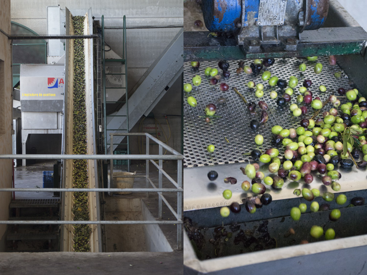 Del campo y sin perder tiempo las aceitunas se van directamente a la almazara (lugar donde se extrae el aceite). Allí a las aceitunas se les quita el ramaje y luego son lavadas para eliminar la suciedad para luego pasar a exprimirlas para sacar el zumo que llevan dentro.